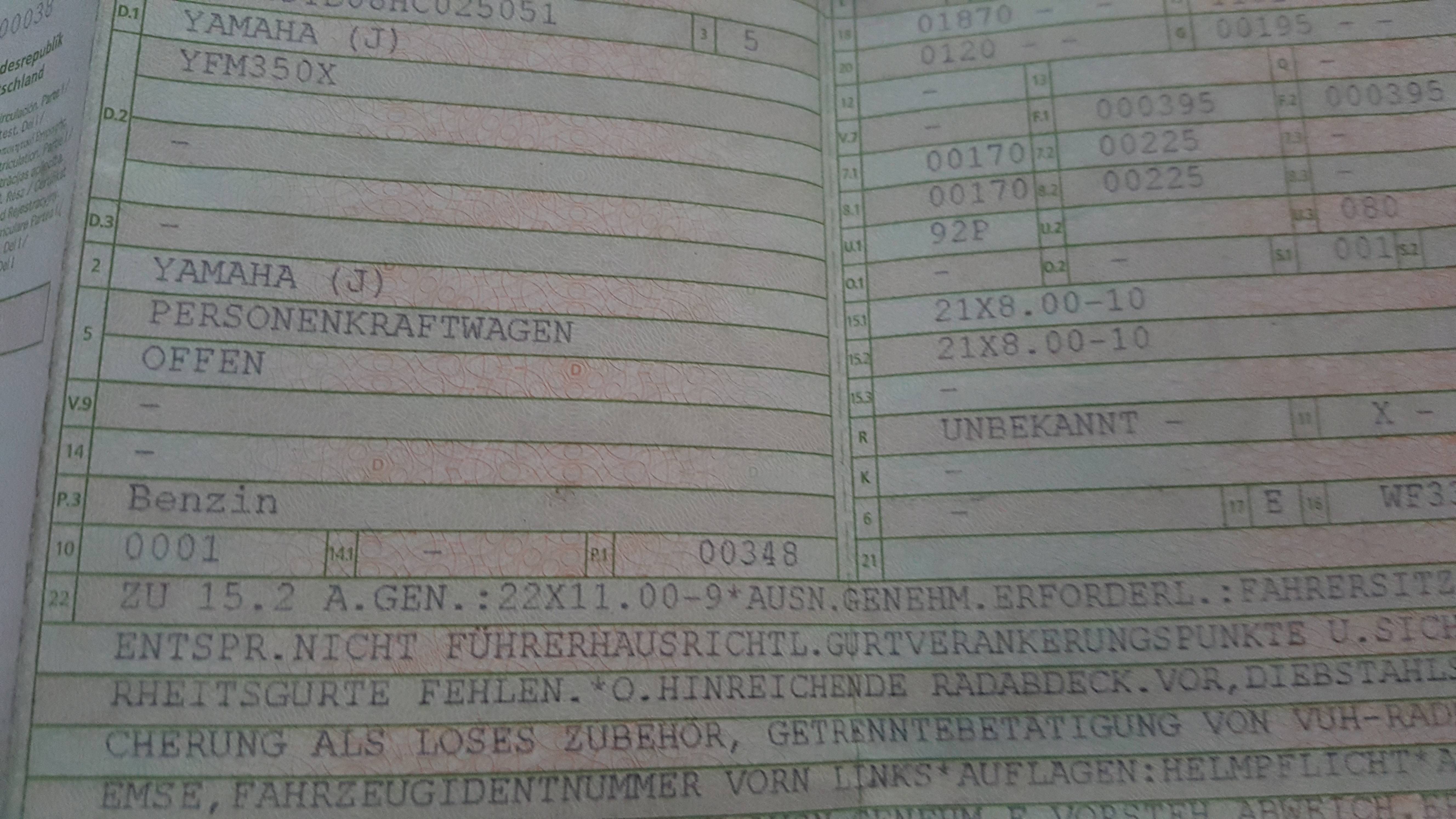 Und zwar wurde bei mir die Reifengröße 21x8.00-10 eingetragen, die es leider aber nicht gibt... deshalb wollte ich gerne was haben was ich nächstes mal dem TÜV Prüfer vorzeigen kann.